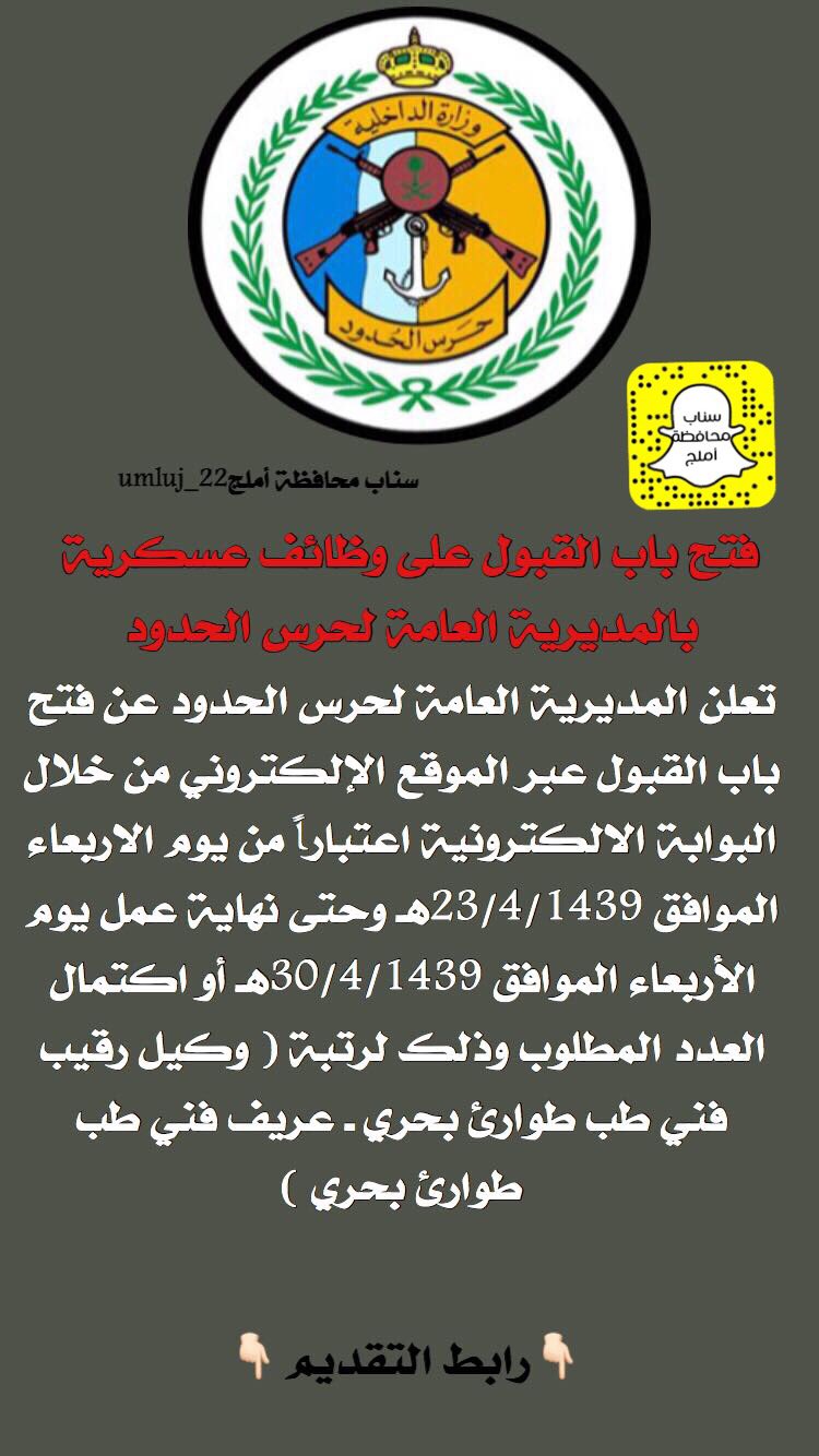 سناب محافظه املج Sur Twitter فتح باب القبول على وظائف عسكرية بالمديريه العامة لحرس الحدود رابط التقديم Https T Co Jbnnxdhffp وظايف حرس الحدود املج تبوك Https T Co 0xwneezwst