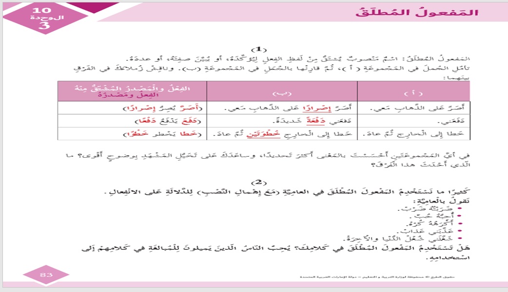 درس التراكيب المفعول المطلق المفعول لأجله الخامس ابتدائي البستان